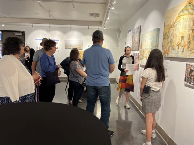 In addition to the poetry reading, Rebecca co-curated the exhibit “Documenting History through Art,” which was open to the public at the Lawrence Family Jewish Community Center. Together with student docents from Torah High School and Ladera County, she guided guests through the exhibit on May 5th as part of the commemoration event.