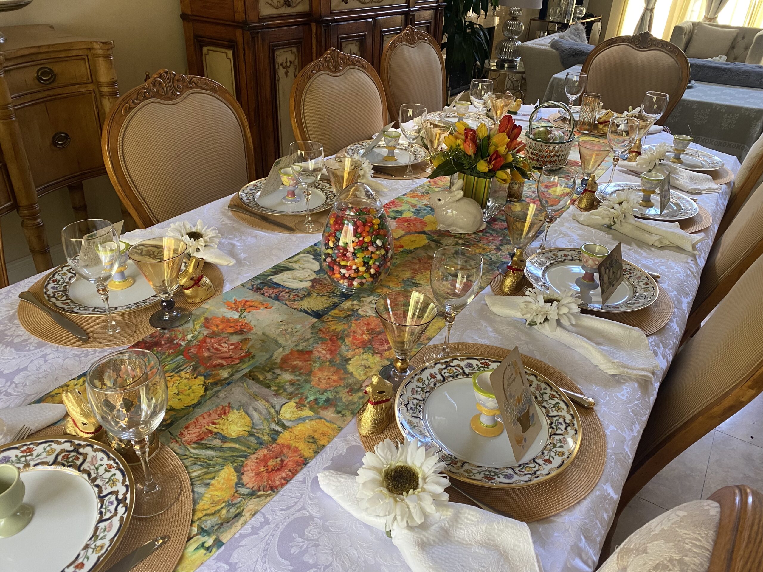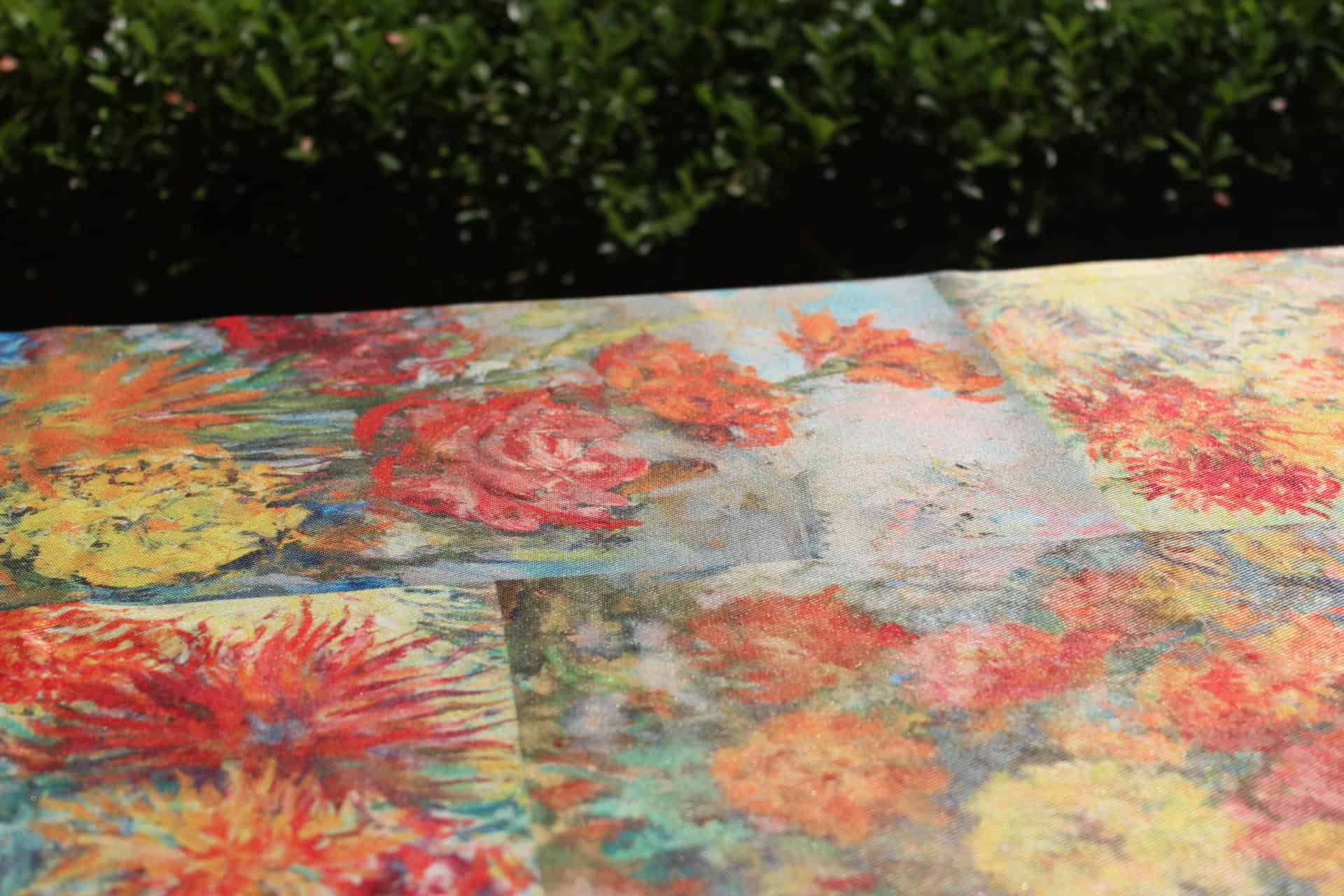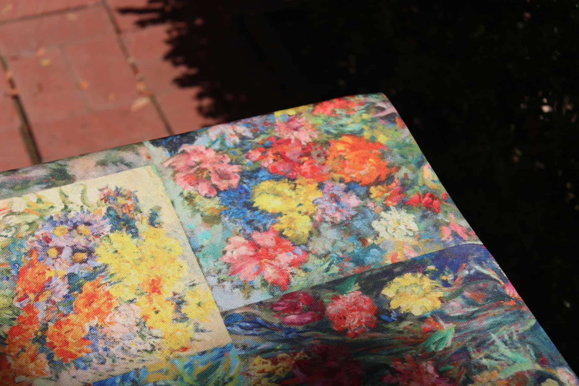 Featuring floral art pieces by David Labkovski painted circa 1980’s, this table runner makes a stunning statement for your table! Soft, vibrant, and easily makes your dinner or event a meaningful one by inviting in the essence of hope that lies within Labkovski’s floral paintings made during a time he was rediscovering hope and the brightness of life.
